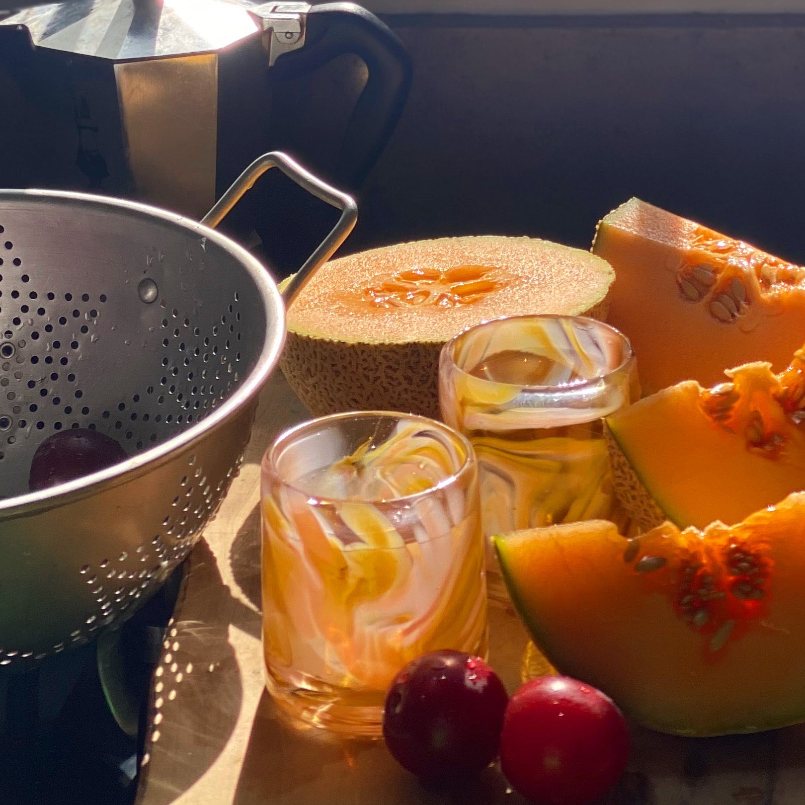 Each piece is hand blown and unique, and there will be slight inconsistencies in shape due to the hand blowing process.