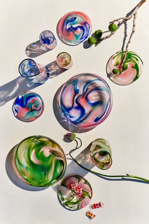 Our handblown organically shaped dessert plates add a touch of whimsy to your table! Our newest addition to the Upstate Glass family.