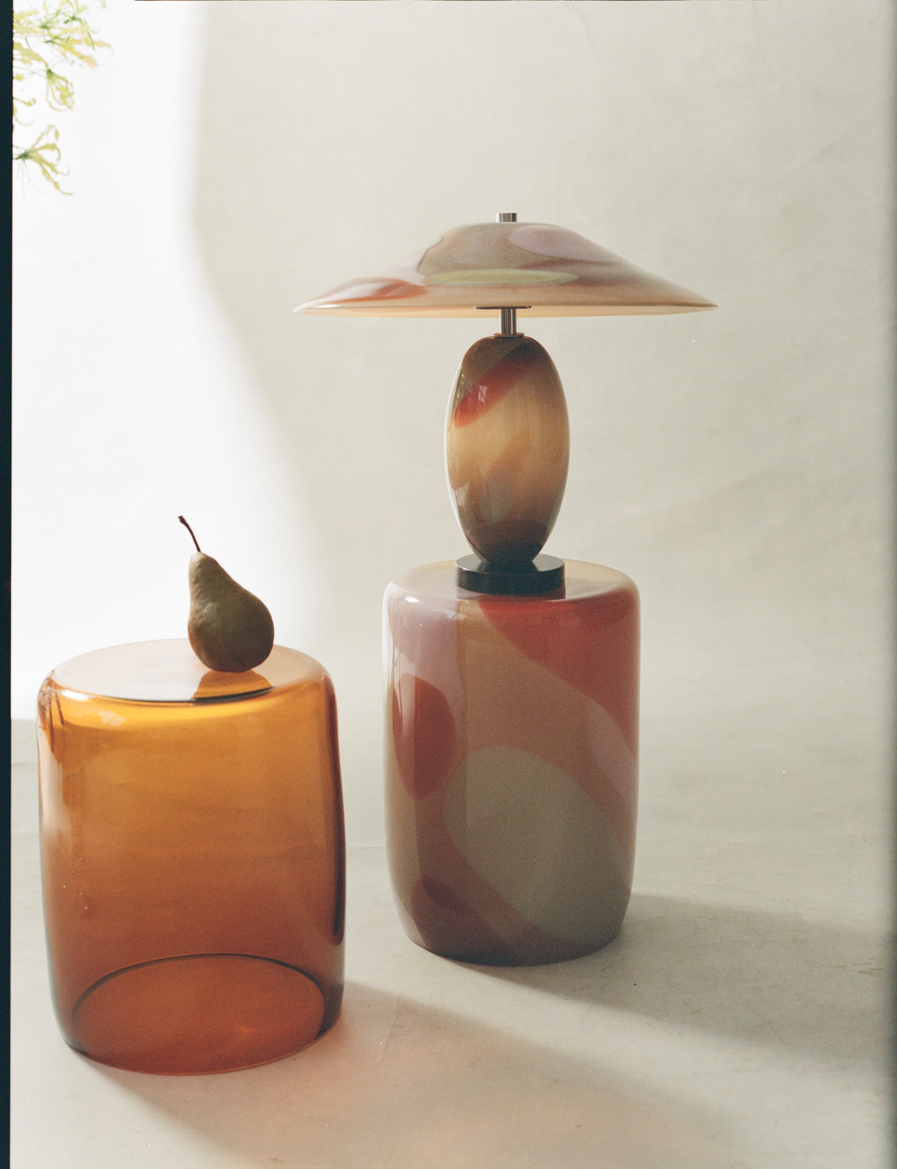 The drum table is part of our Liminal Portals collection. This table sits some where between decoration and ritual designed not just to be looked at but to be returned to. Each drum table is designed to flip, transforming from surface to a vessel for botanicals. Handblown and finished in NYC.
