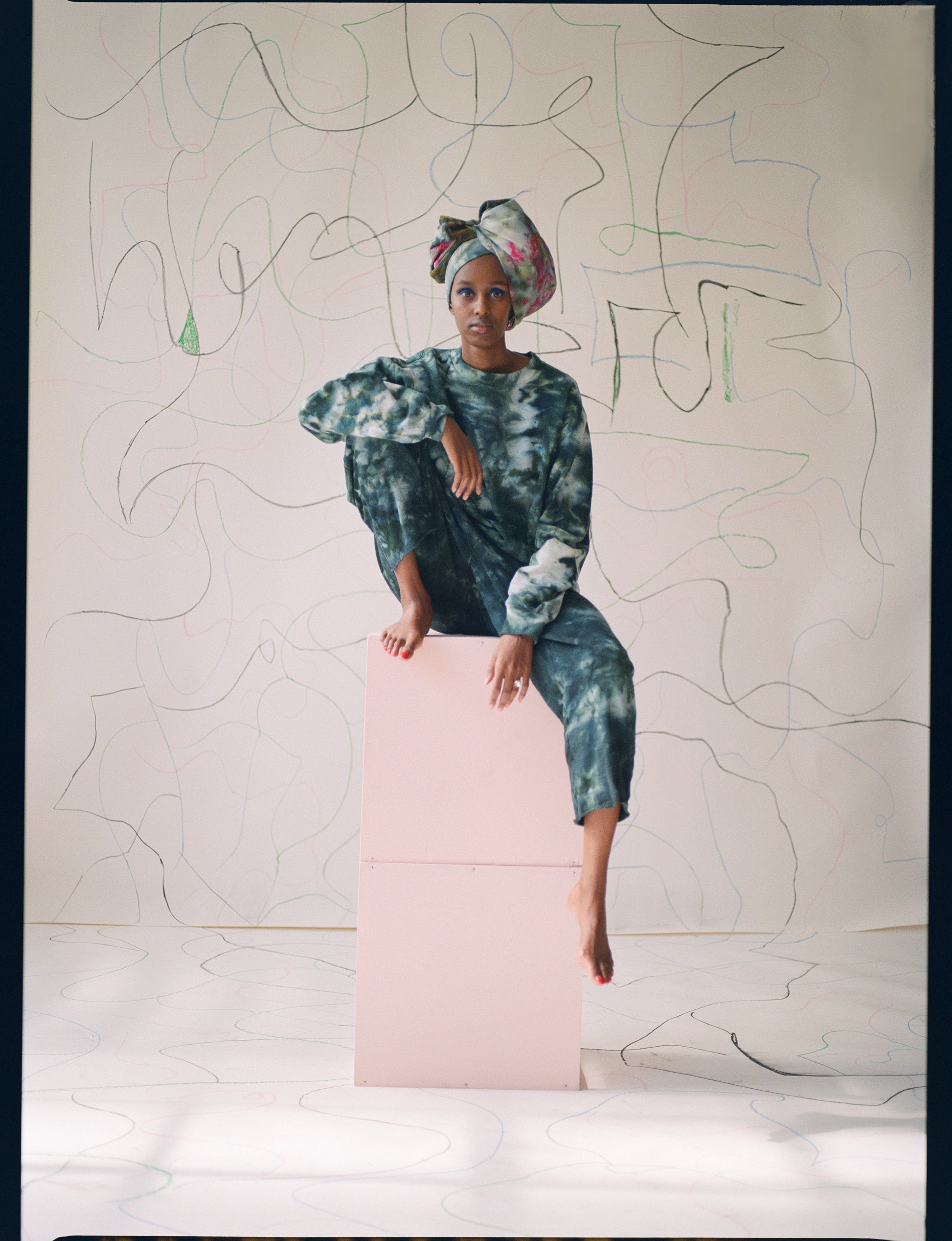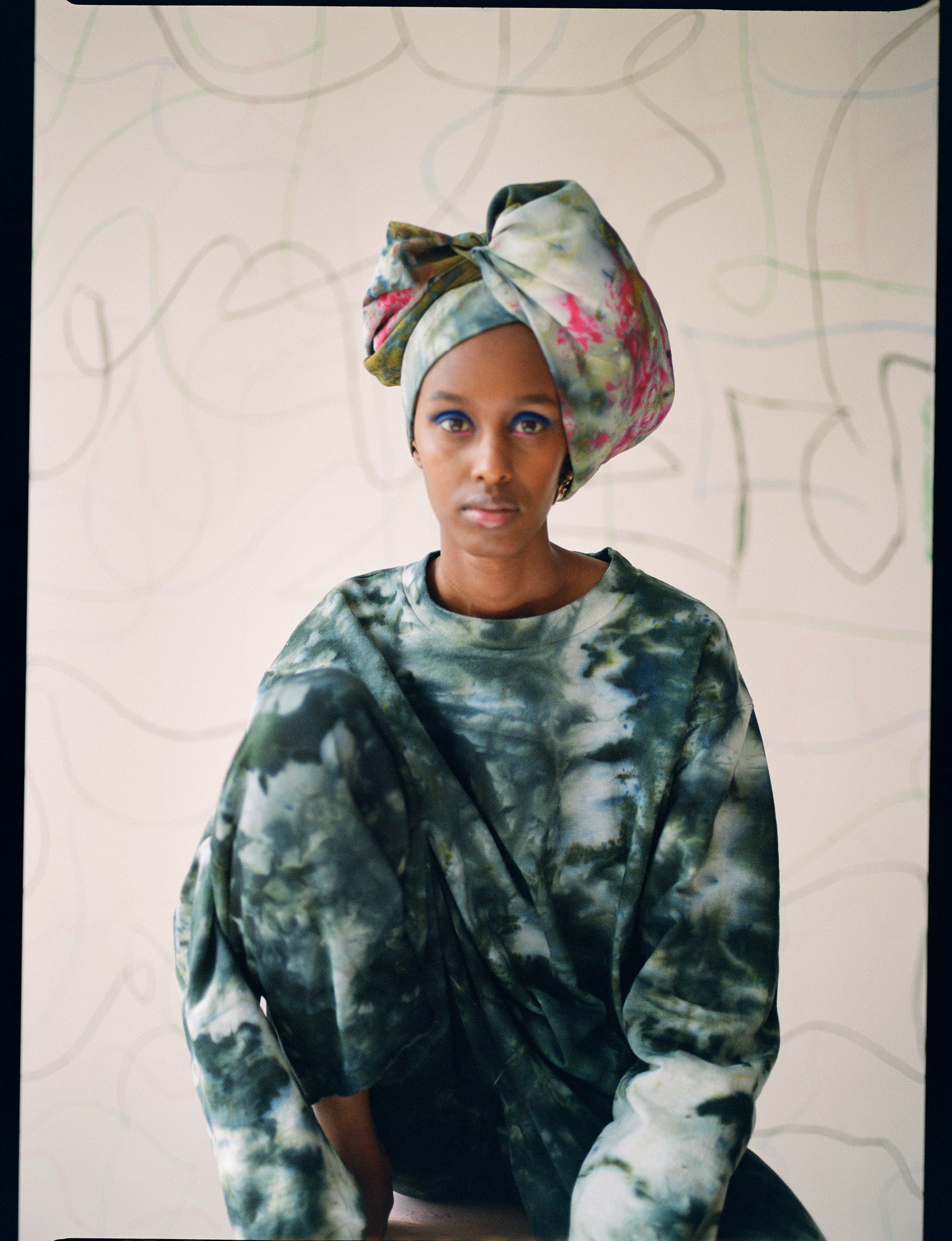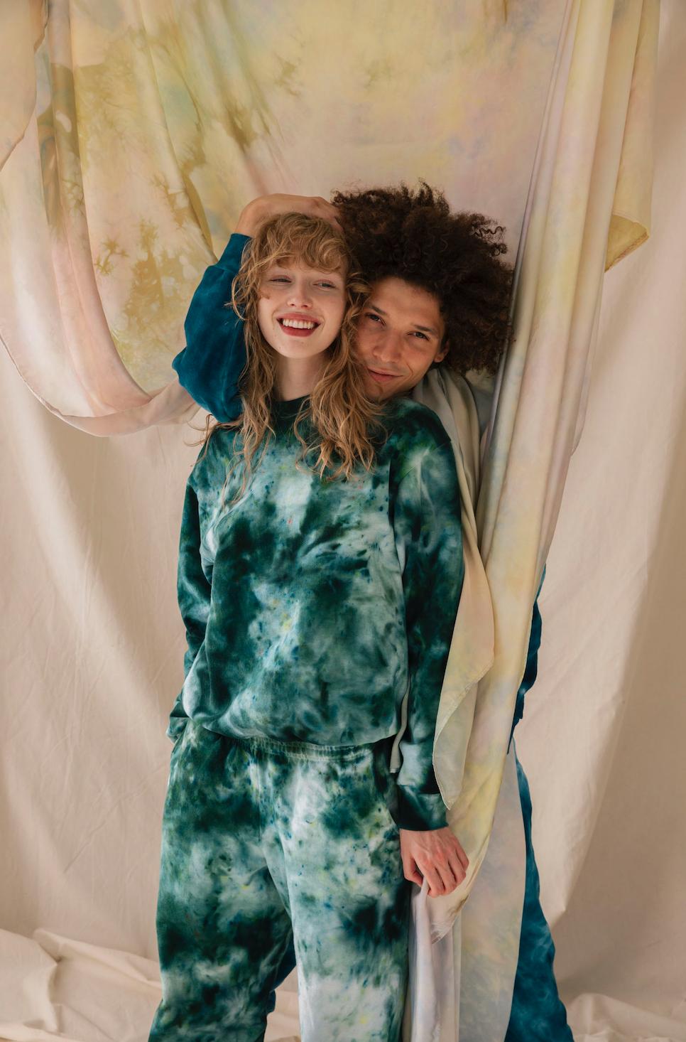 The Lola crewneck is hand dyed in deep emeralds and indigos (with some residual flecks of oranges and yellows). Each sweatshirt is hand dyed and unique. What you receive will vary from the product image in tone and pattern, due to the nature of the hand dye process.