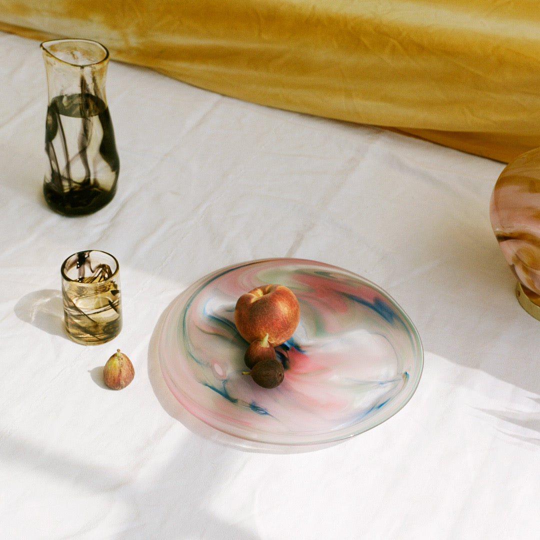 Hand blown platters made in NYC by talented glass blowing artisans.