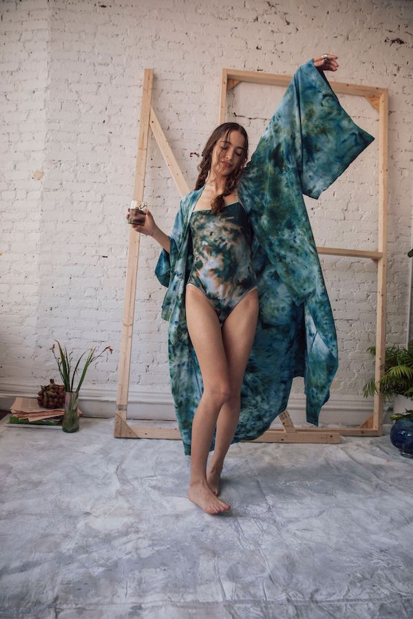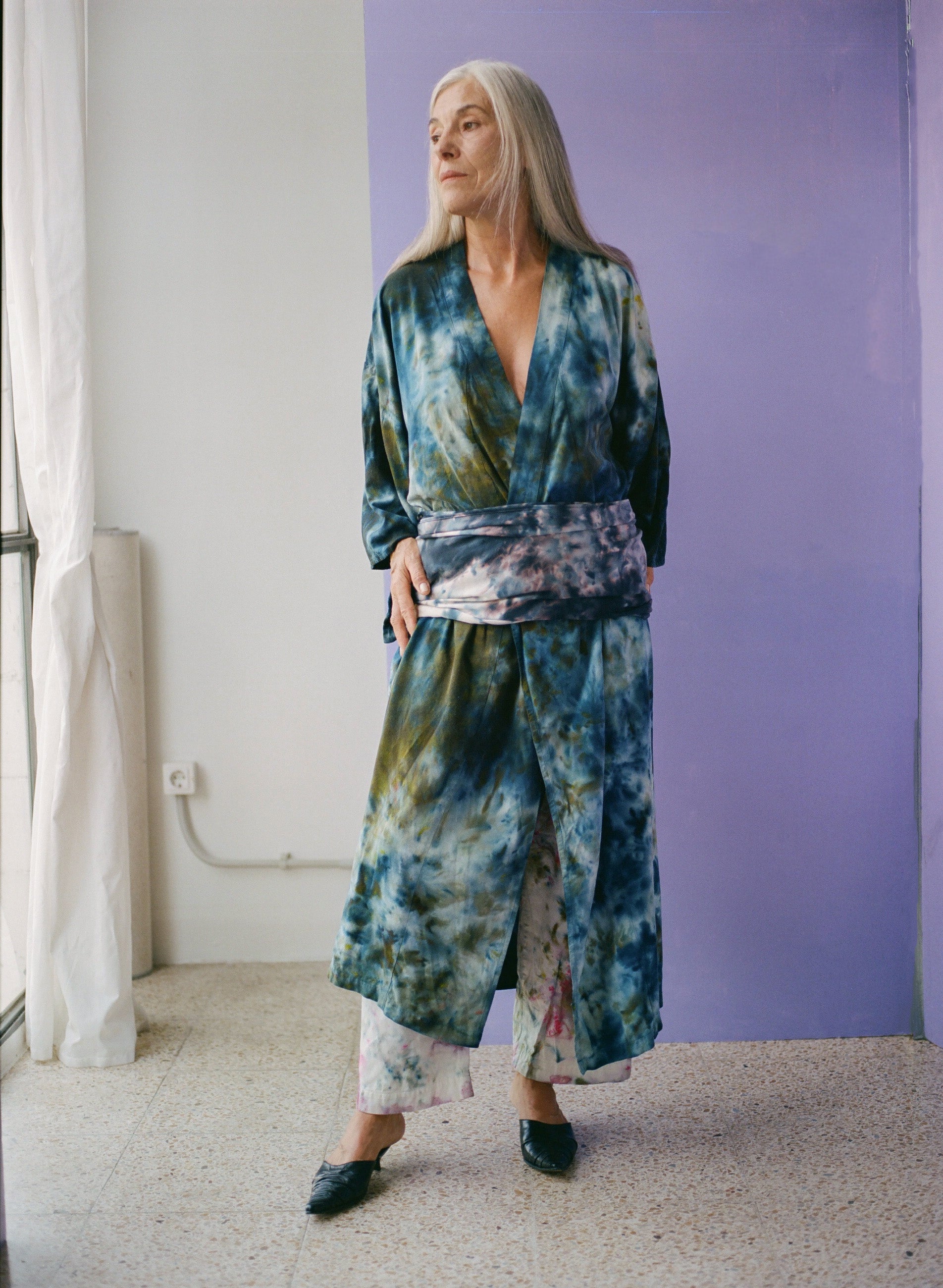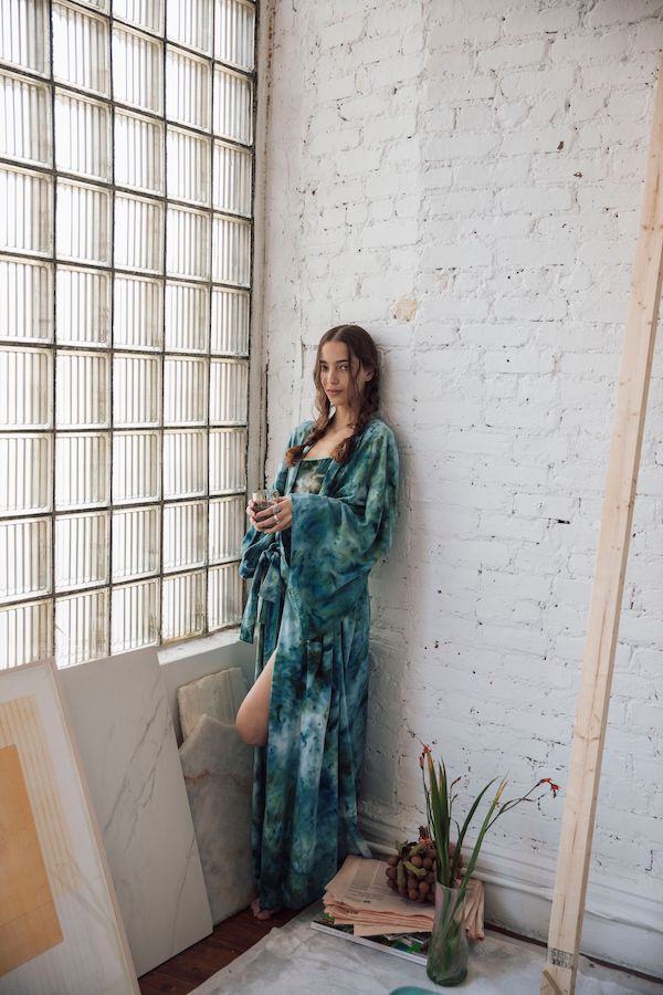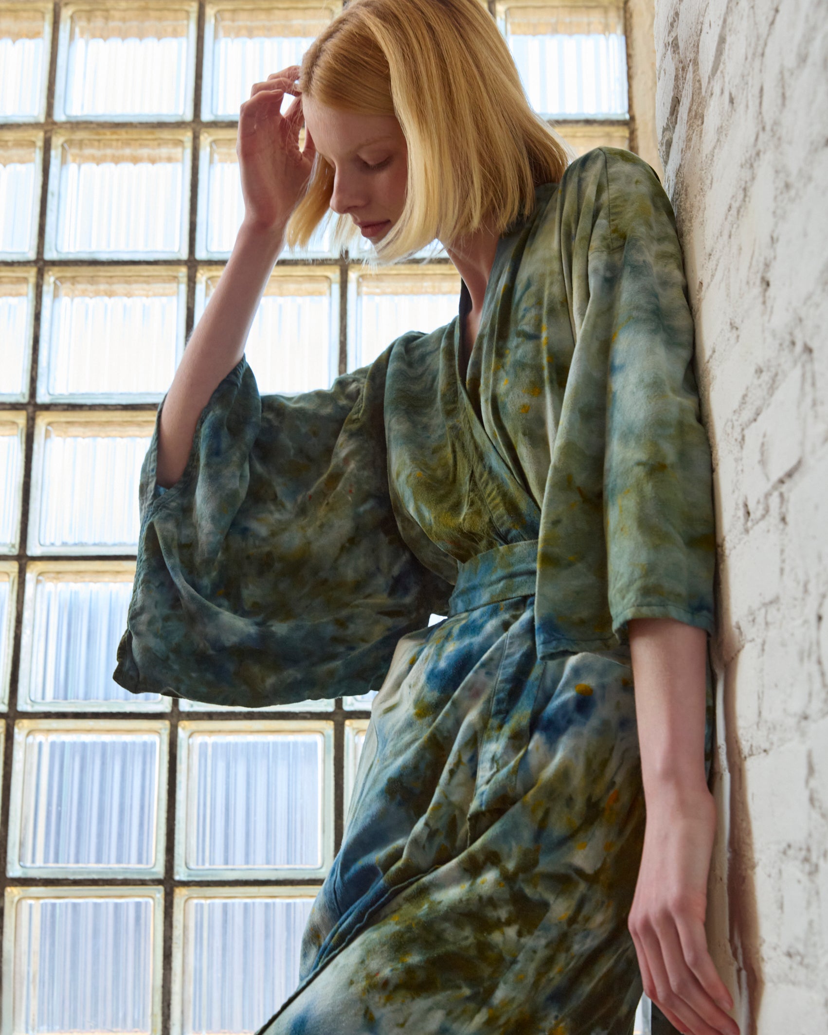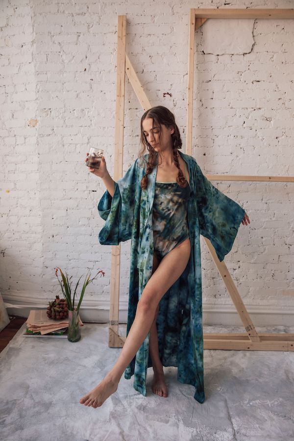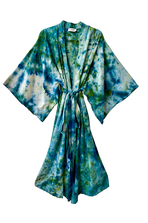 100% Raw Silk Kimono Robe fashioned in the spirit of the Japanese yukata or summer robe.